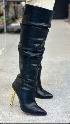 بوت زیر زانو VERSACE طرح چروک جنس خاویاری نوک تیز پاشنه 6 سانت اورجینال