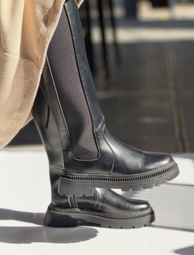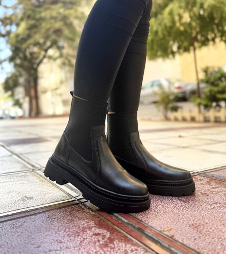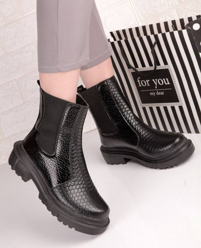 نیم بوت بغل زیپ چرم کشی ترکیبی طرح جدید