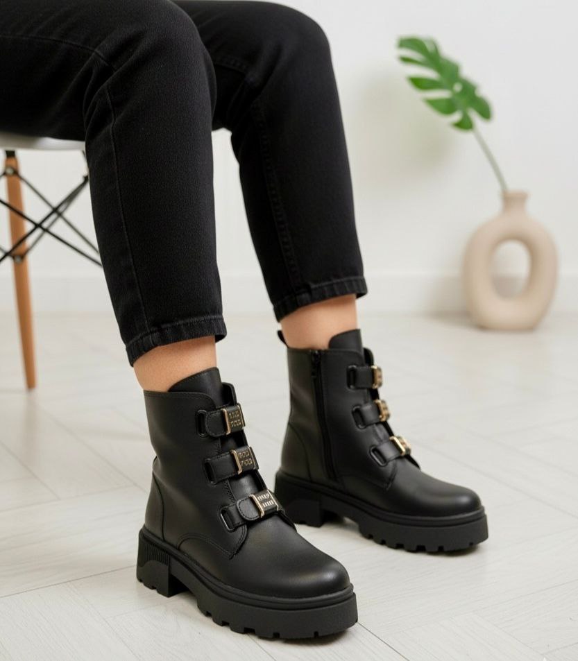 نیم بوت لژدر زنانه چرم طرحدار فوق لاکچری مدل buddy