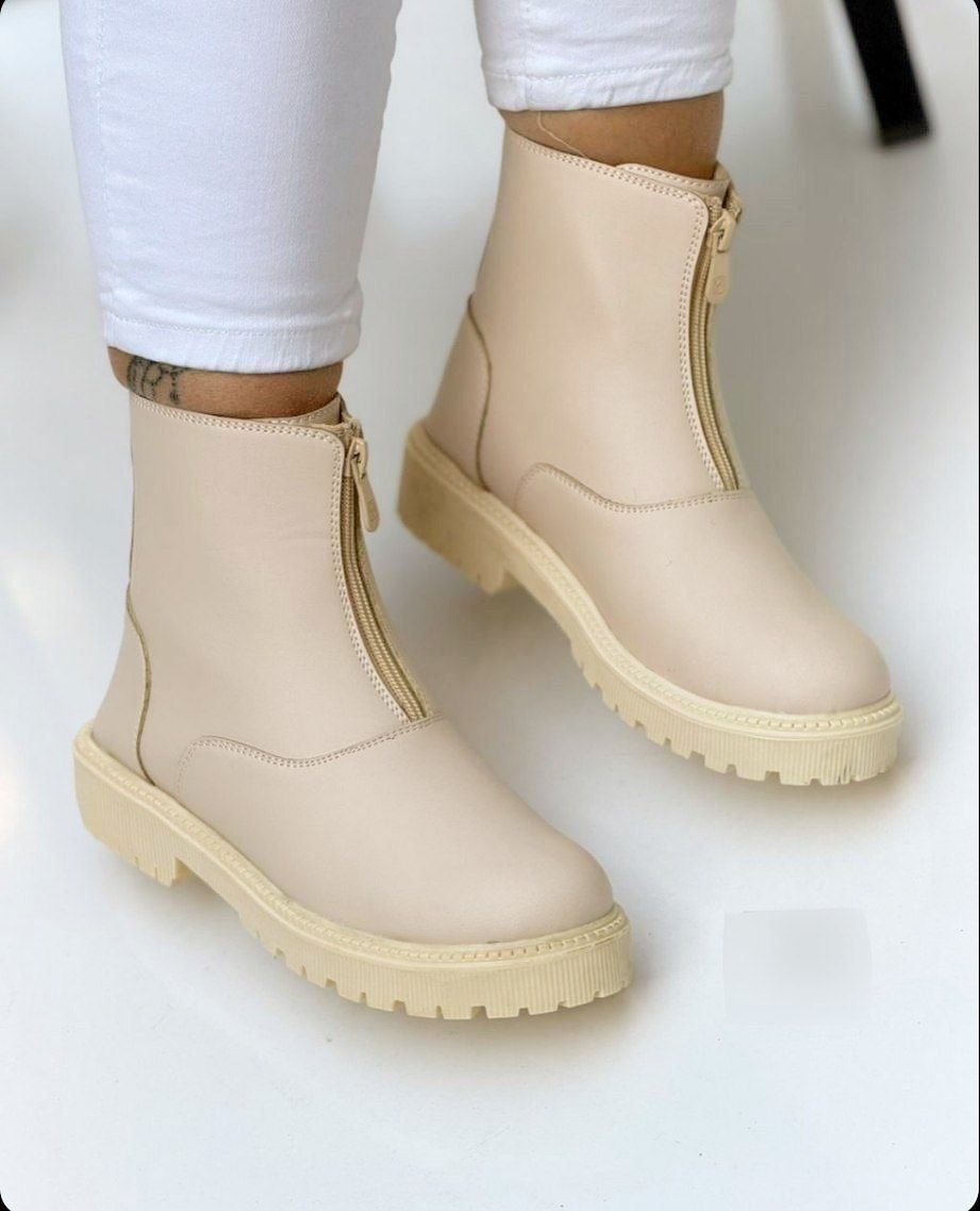 نیم بوت جلو زیپ جدید در دو رنگ زیبا و جذاب کرم و مشکی